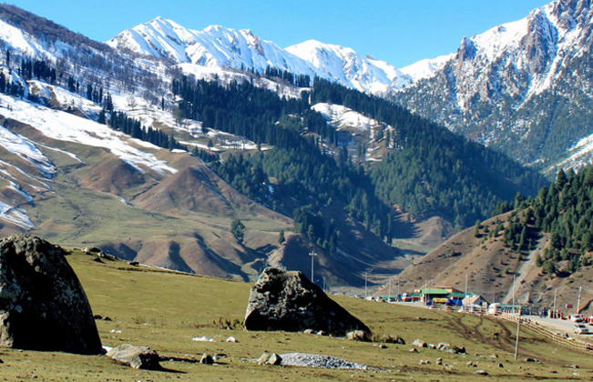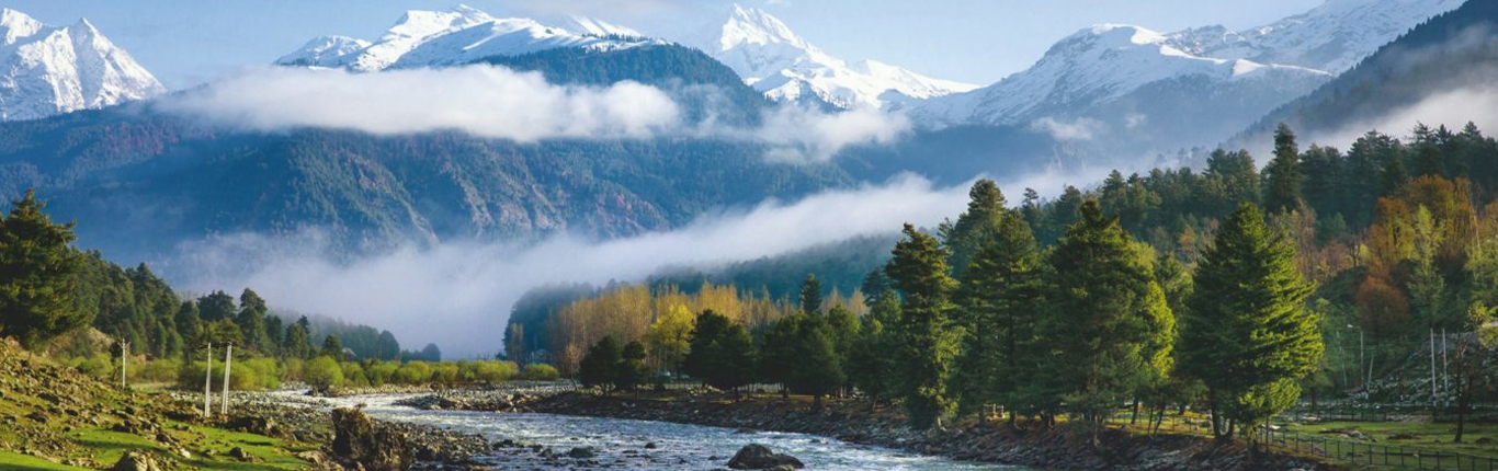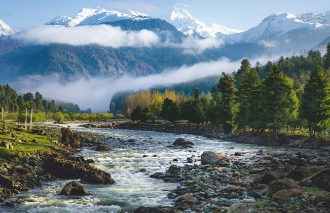 Set like a jewelled crown on the map of India, Kashmir is a multi-faceted diamond, changing its hues with the seasons - alwayas extravagantly beautiful. Two major Himalayan ranges, the Great Himalayan Range and the Pir Panjal, surround the landscape from the north and south respectively. They are the source of great rivers, which flow down into the valleys, forested with orchards and decorated by lily-laden lakes.