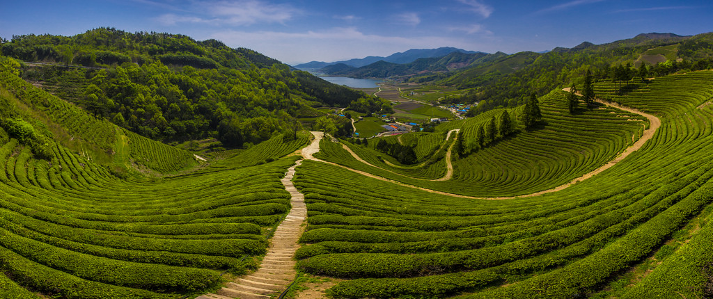 green tea plantations in South Korea, this plantation area produces 40% of the country’s green tea. The combed green valley lined with tea gardens offers a wonderful panoramic view and the simplistic