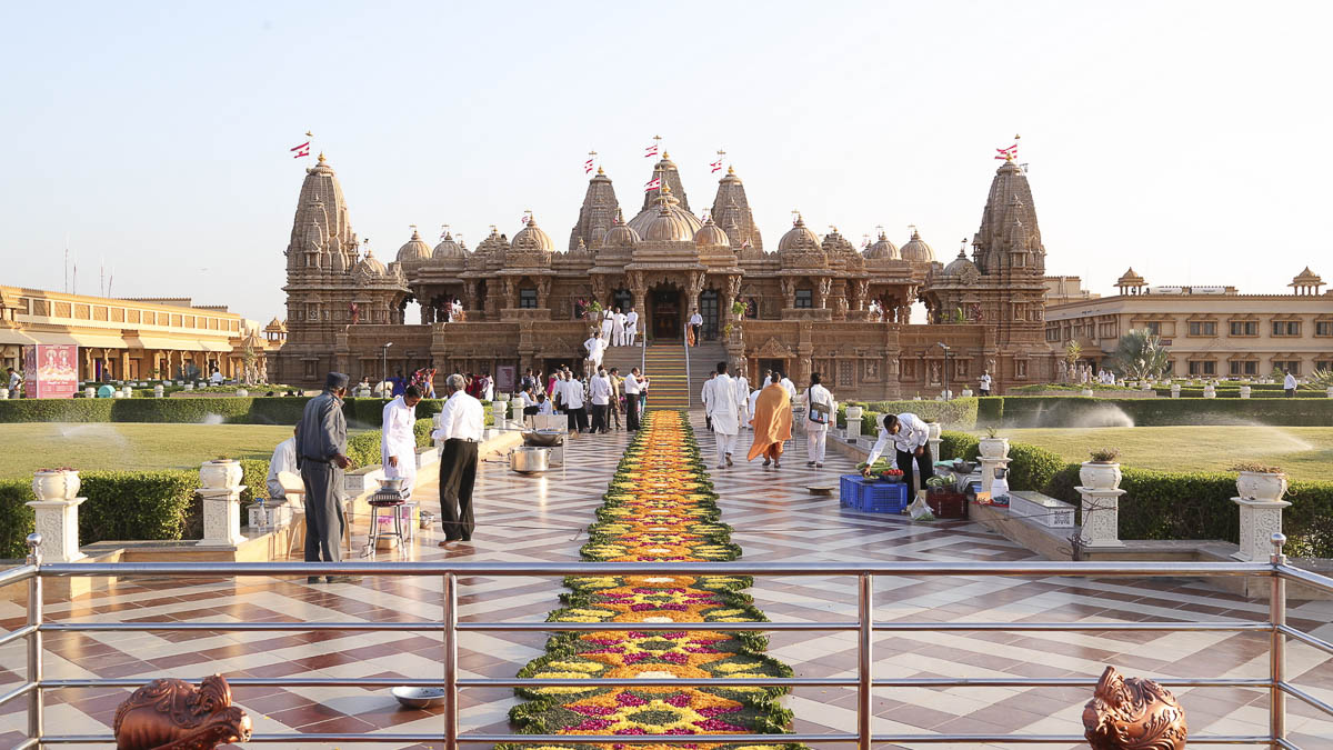 Guinness Book of World Records Committee. The temple is constructed in Medieval Architectural style combining five various forms of architecture with arches, floral motifs, and ornate pavilions.