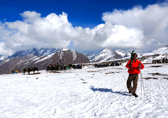 A partir de la cima nos aguarda un descenso continuo de una hora hasta lIegar a un extraordinario campamento a 3.750 metros. EI paisaje 10 completan vistas panaramicas de la cadena Lahaul hacia el norte.