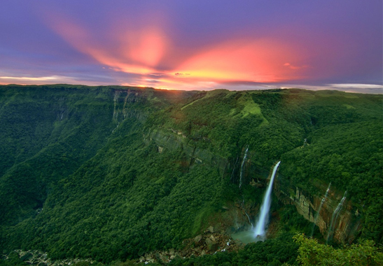 After early breakfast drive to Cherrapunjee (4,400 ft.), the wettest place in the world. You will see the beautiful waterfall known as Nohkalikai. You can also explore the caves known as Mawsmai. Evening return to Shillong, enroute visit Elephanta falls and Shillong peak for some breathtaking views. Overnight stay at Shillong.